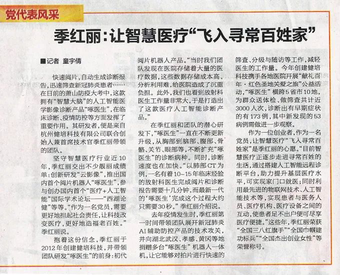 “聽了王敏書記的報告,感到非常振奮,也深受鼓舞。報告簡單明了的總結(jié)了過去五年取得的成績,主要指出未來五年的方向,明確了奮斗目標(biāo),以及實現(xiàn)目標(biāo)的路徑。動員全區(qū)上下全面貫徹習(xí)近平新時代中國特色社會主義思想,踐行“八八戰(zhàn)略”,厚植四大優(yōu)勢、把握四對關(guān)系、實現(xiàn)四大突破,推進(jìn)“產(chǎn)城人文”深度融合,為高水平建設(shè)“亞運國際城?數(shù)智新蕭山”,高質(zhì)量打造新時代共同富裕新標(biāo)桿,當(dāng)好全市領(lǐng)頭雁、成為全省排頭兵、爭做全國先行者而努力奮斗。報告中特別提出,全面推行“健康大腦+智慧醫(yī)療”。做為醫(yī)療人工智能企業(yè),這也是我們這幾年來努力打造的方向,讓人工智能技術(shù)助理居民全生命周期的健康管理!我們根植于蕭山,對未來充滿信心!”