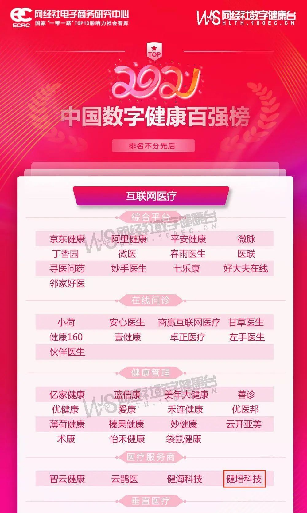 喜訊:健培科技榮登《2021年度中國數(shù)字健康 “百強榜”》