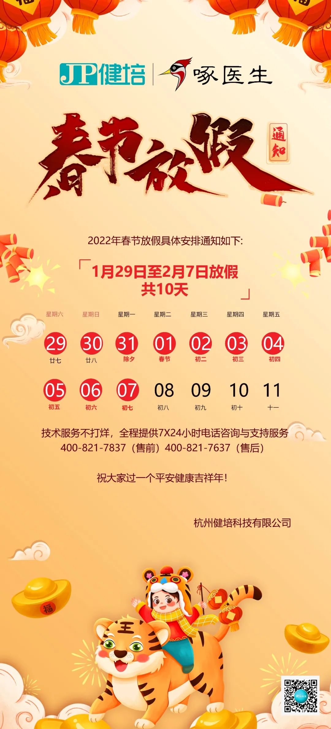 2022,再譜奮斗新篇章值此新春佳節(jié)來臨之際,健培科技全體員工提前給大家拜年了,祝大家:如虎添翼,福運連連!