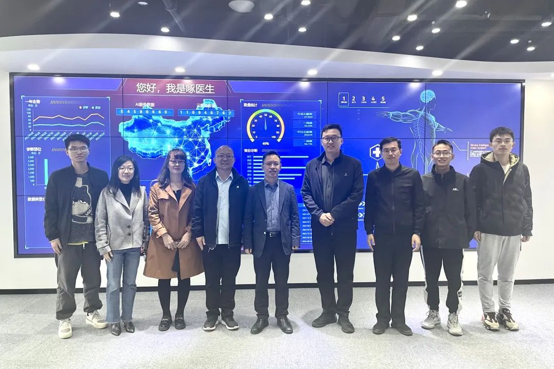 3月30日,西安建筑科技大學交叉研究院龐鵬飛副院長,劉虎副教授,西北工業(yè)大學張慧卿研究員等師生一行來訪健培科技。健培科技董事長程國華,總經(jīng)理洪波,副總經(jīng)理、AI專家何林陽,智慧健康部總監(jiān)戚劍鋒等公司領(lǐng)導熱情接待。