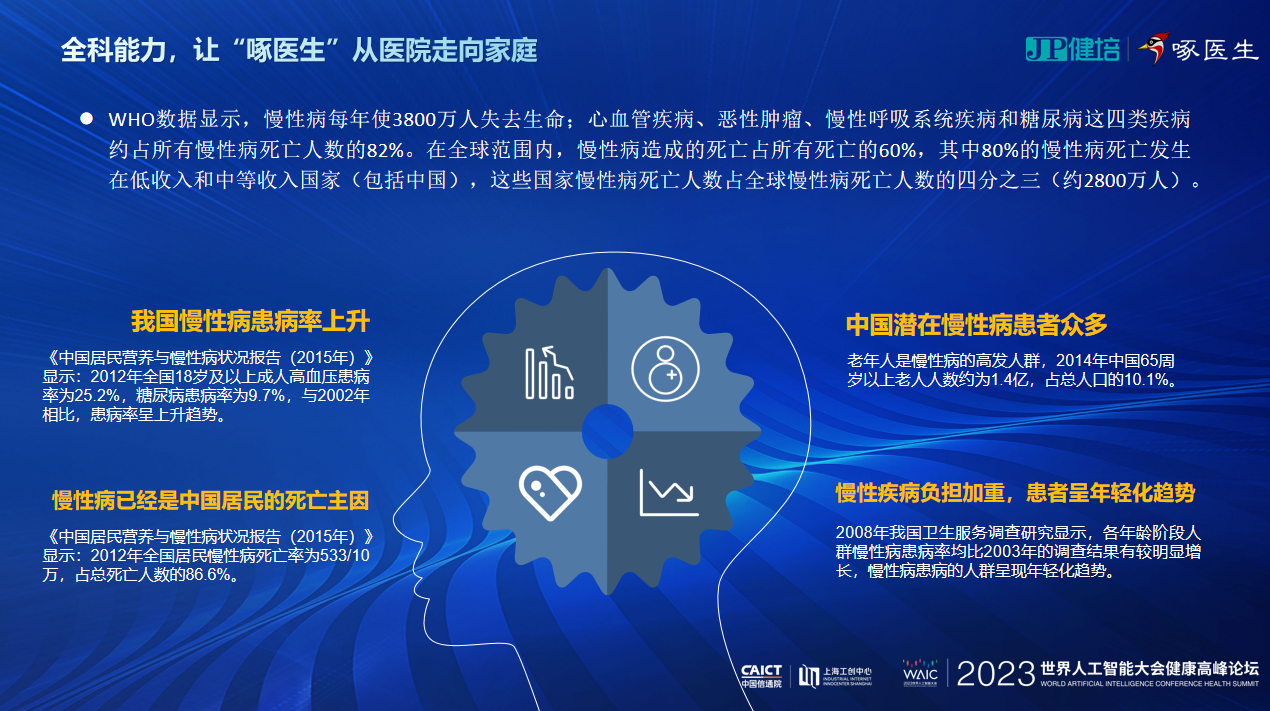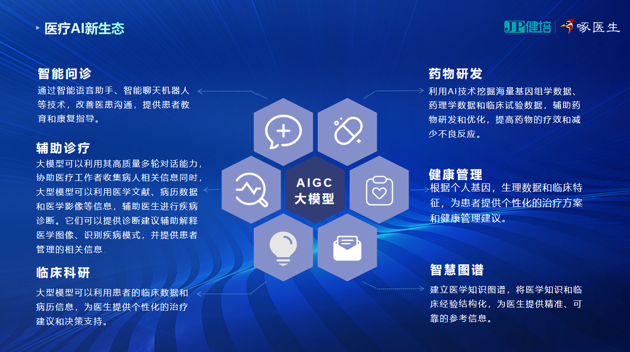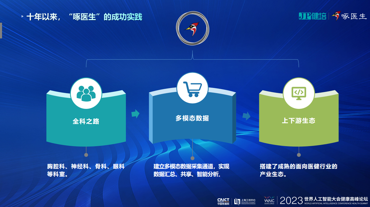 “健培科技從2012年開始的AI 2.0時代,到如今以AIGC為標(biāo)志的3.0時代,形成了比較完整的產(chǎn)品服務(wù)生態(tài),打通了諸多醫(yī)療與健康的鏈條。有了大模型技術(shù)的加持,未來十年,我們啄醫(yī)生將走入千家萬戶,當(dāng)好老百姓的AI家庭醫(yī)生!”程國華最后總結(jié)道。
