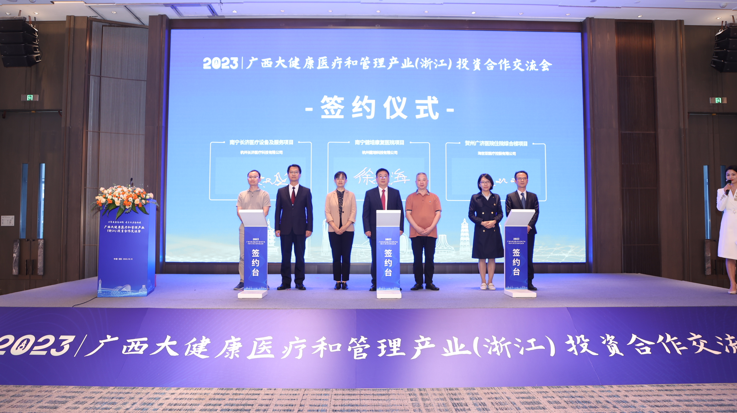 近日,2023廣西大健康醫(yī)療和管理產(chǎn)業(yè)(浙江)投資合作交流會在杭舉辦。廣西自治區(qū)衛(wèi)生健康委黨組成員、副主任周恭偉,自治區(qū)中醫(yī)藥管理局規(guī)劃產(chǎn)業(yè)處處長谷筱玉,自治區(qū)衛(wèi)生健康委藥政處處長何文莉,南寧市衛(wèi)生健康委黨組成員、副主任趙紅洋等領(lǐng)導(dǎo)、專家、企業(yè)家們共同參與。大會上健培科技與南寧市衛(wèi)生健康委舉辦了簽約儀式,開展科技賦能基層醫(yī)療、健康管理的合作。