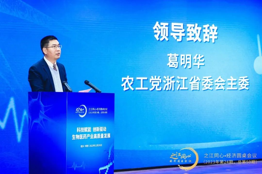 12月20日下午,由中共浙江省委統(tǒng)戰(zhàn)部指導(dǎo),農(nóng)工黨浙江省委會(huì)等主辦的第50期之江同心?經(jīng)濟(jì)圓桌會(huì)議在紹興柯橋召開(kāi)。本次會(huì)議以“科技賦能 創(chuàng)新驅(qū)動(dòng)生物醫(yī)藥產(chǎn)業(yè)高質(zhì)量發(fā)展”為主題,來(lái)自生物醫(yī)藥產(chǎn)業(yè)的專家、企業(yè)家齊聚柯橋,共同探討生物醫(yī)藥產(chǎn)業(yè)的未來(lái)發(fā)展,分享前沿科技與創(chuàng)新的最新成果。農(nóng)工黨中央經(jīng)濟(jì)委委員、健培科技董事長(zhǎng)程國(guó)華受邀參與本次會(huì)議。
