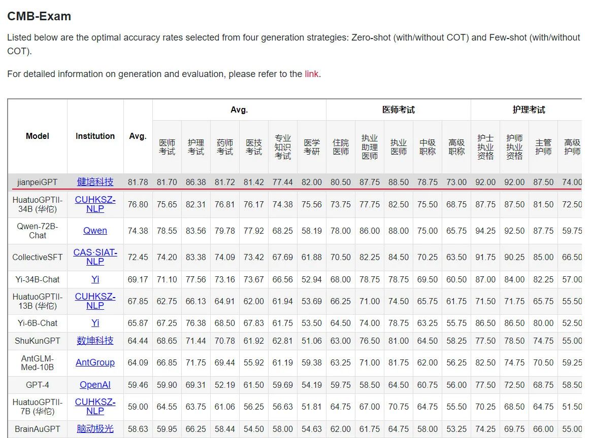 喜訊:啄醫(yī)生醫(yī)療大模型在最新的中文醫(yī)療模型評(píng)估中(CMB-Exam)排名第一!