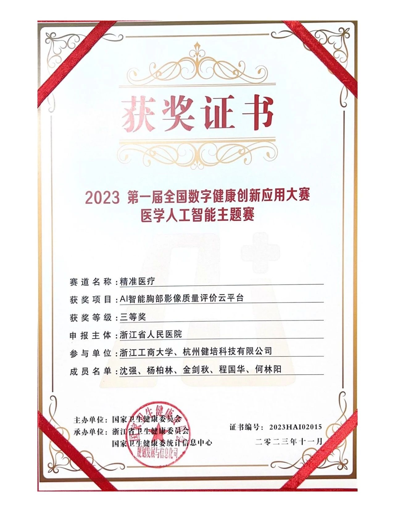 2023年第一屆全國(guó)數(shù)字健康創(chuàng)新應(yīng)用大賽醫(yī)學(xué)人工智能主題賽三等獎(jiǎng)