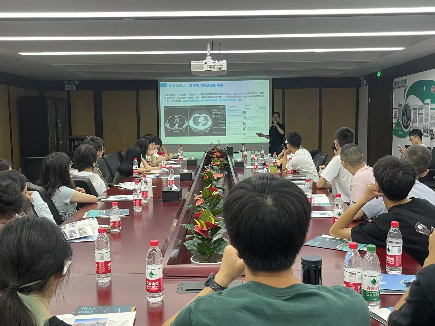 在座談會上,復(fù)旦大學(xué)博士、健培科技董事長程國華分享了《從檢測人體走向檢測萬物》,并分享了自己的創(chuàng)業(yè)經(jīng)歷以及健培與啄云的技術(shù)創(chuàng)新經(jīng)驗,并對學(xué)術(shù)研究付諸于實踐應(yīng)用提出了一些建設(shè)性經(jīng)驗。程國華博士表示,高校是科技企業(yè)的智力源泉,希望學(xué)弟學(xué)妹們能堅持投身于各領(lǐng)域的科技創(chuàng)新,肩負(fù)起民族復(fù)興的重任,并期待有更多學(xué)生通過實踐鍛煉,參與到產(chǎn)業(yè)界的產(chǎn)品開發(fā)工作中。陳釗院長表示這次走進(jìn)健培科技,參訪學(xué)生們紛紛表示,此次實踐收獲頗豐,真正體驗到了醫(yī)療科技領(lǐng)域的一線工作。