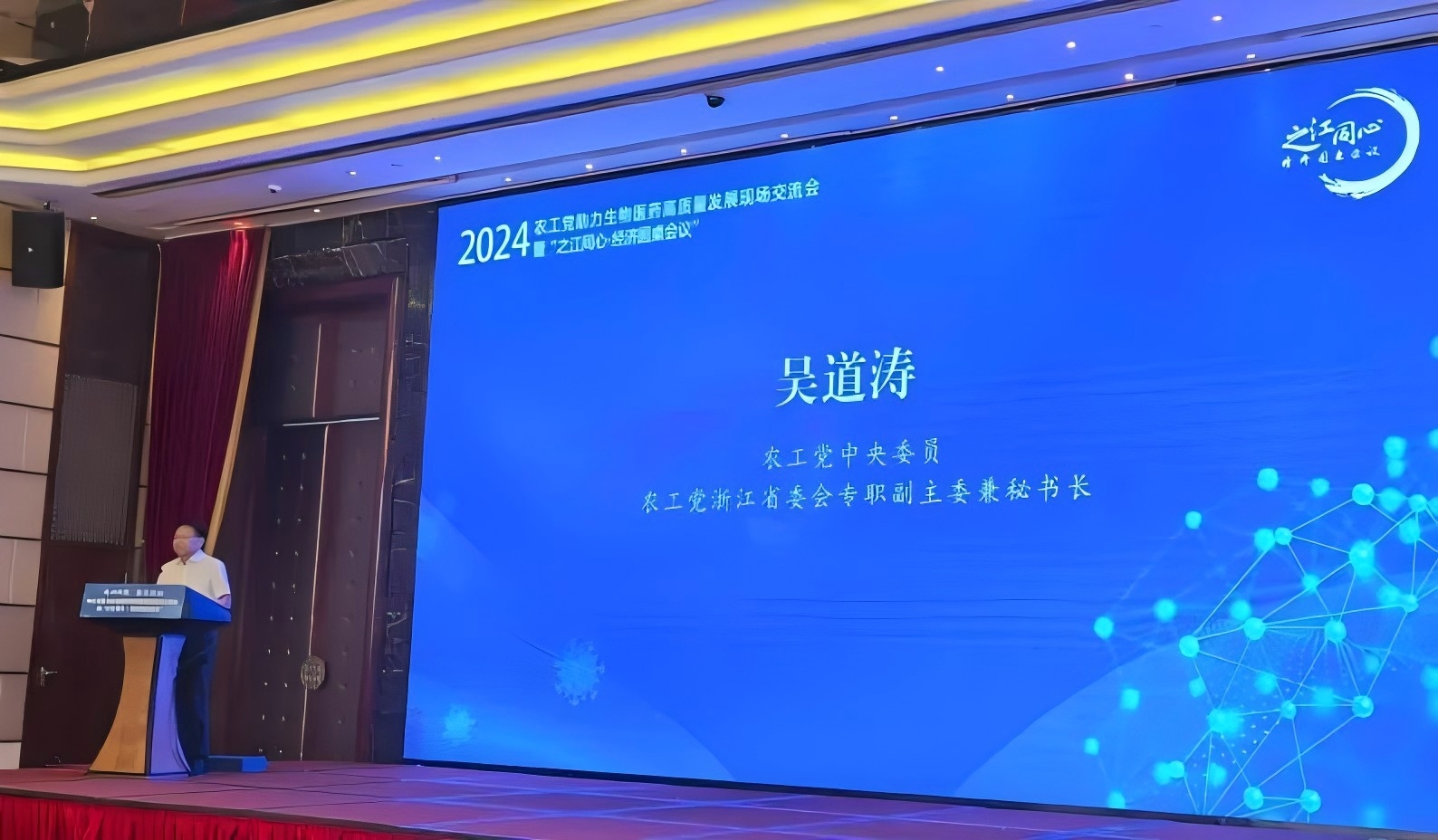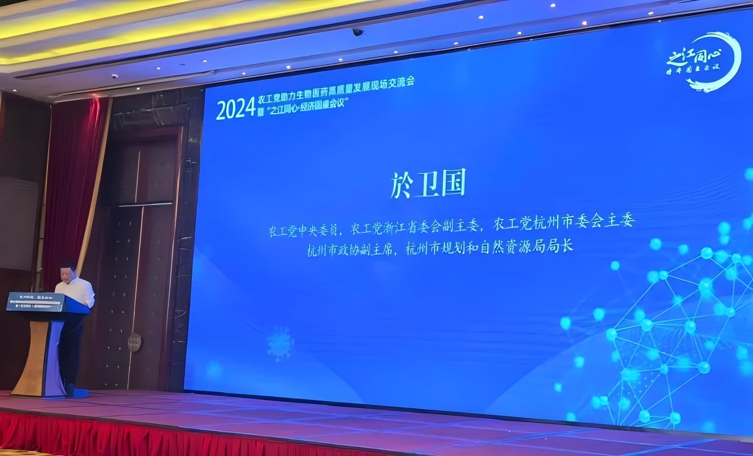 開幕式上,農(nóng)工黨浙江省委會專職副主委兼秘書長吳道濤、農(nóng)工黨杭州市委會主委於衛(wèi)國致辭。農(nóng)工黨中央經(jīng)濟工作委員會主任、省委會副主委丁列明發(fā)表了《加強醫(yī)藥創(chuàng)新 提升新質(zhì)生產(chǎn)力》主旨演講。