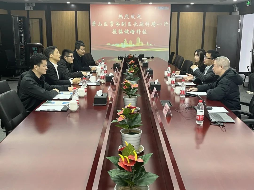 蕭山區(qū)委常委、常務(wù)副區(qū)長施科琦一行蒞臨健培科技考察調(diào)研