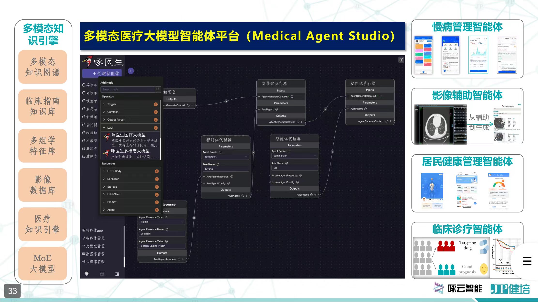 值得特別關(guān)注的是,隨著云計算、大數(shù)據(jù)、人工智能、互聯(lián)網(wǎng)等新一代信息技術(shù)的迅猛發(fā)展,健培科技依托其“啄醫(yī)生”多模態(tài)醫(yī)療大模型智能體平臺所開展的創(chuàng)新應(yīng)用,正為基層醫(yī)療領(lǐng)域帶來一場前所未有的深刻變革。通過該平臺,我們能夠構(gòu)建出一系列涵蓋慢病管理智能體、影像輔助診斷智能體、居民健康管理智能體、數(shù)字家醫(yī)智能體等在內(nèi)的全周期、全鏈條、全科室的智能體基層醫(yī)療場景,這不僅將極大提升基層醫(yī)療服務(wù)的效率與質(zhì)量,更將為每一位居民帶來更加個性化、精準(zhǔn)化的健康管理服務(wù)體驗。