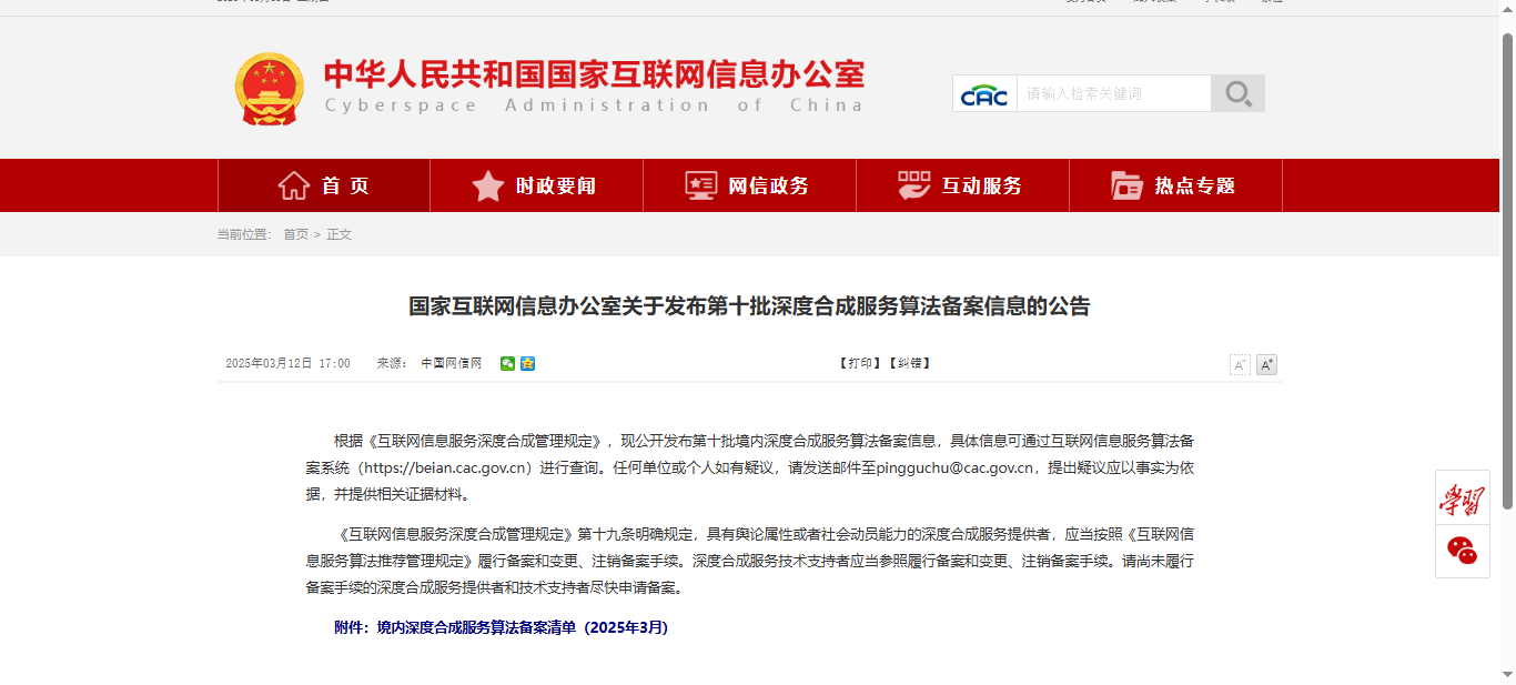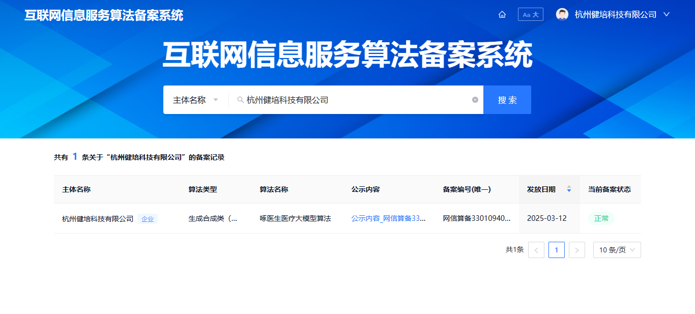 3月12日,國(guó)家互聯(lián)網(wǎng)信息辦公室發(fā)布了第十批深度合成服務(wù)算法備案信息的公告,?啄醫(yī)生醫(yī)療大模型榜上有名,這標(biāo)志著我們的核心技術(shù)能力和產(chǎn)品合規(guī)性再次獲得權(quán)威認(rèn)可,持續(xù)推動(dòng)人工智能技術(shù)在醫(yī)療健康領(lǐng)域的深度應(yīng)用。