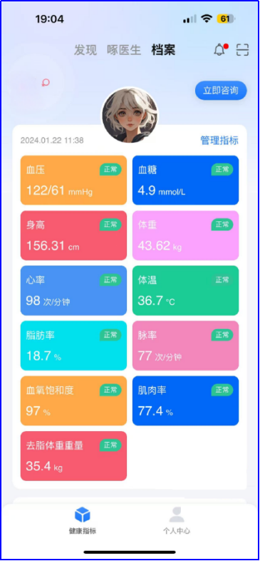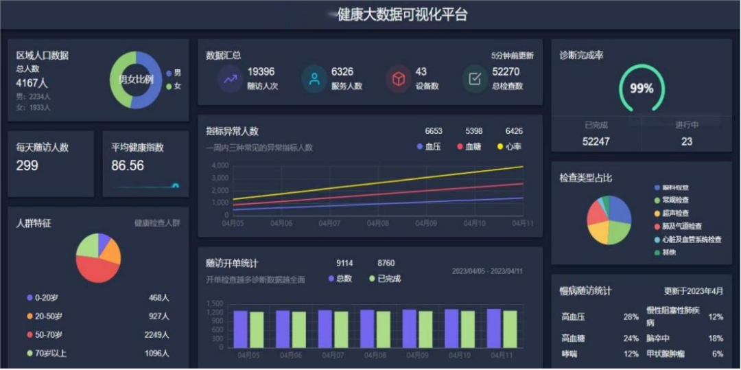 建設(shè)了基于疾病風(fēng)險(xiǎn)評(píng)估的健康畫像系統(tǒng),為居民提供精準(zhǔn)、個(gè)性化的健康服務(wù),實(shí)時(shí)監(jiān)測(cè)患者的健康狀況,記錄并分析患者的各項(xiàng)生理指標(biāo),為醫(yī)生制定個(gè)性化的治療方案提供數(shù)據(jù)支持?;颊呖赏ㄟ^移動(dòng)端隨時(shí)查看自己的健康數(shù)據(jù),了解自己的健康狀況,從而更好地參與和管理自己的健康。