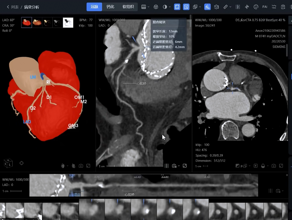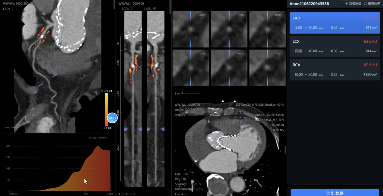 影像分析方面:系統(tǒng)能夠自動處理心血管CTA、腦血管MRA、外周血管超聲等多模態(tài)影像數(shù)據(jù),精準識別斑塊性質(zhì)、狹窄程度和病變范圍,生成結(jié)構(gòu)化報告。