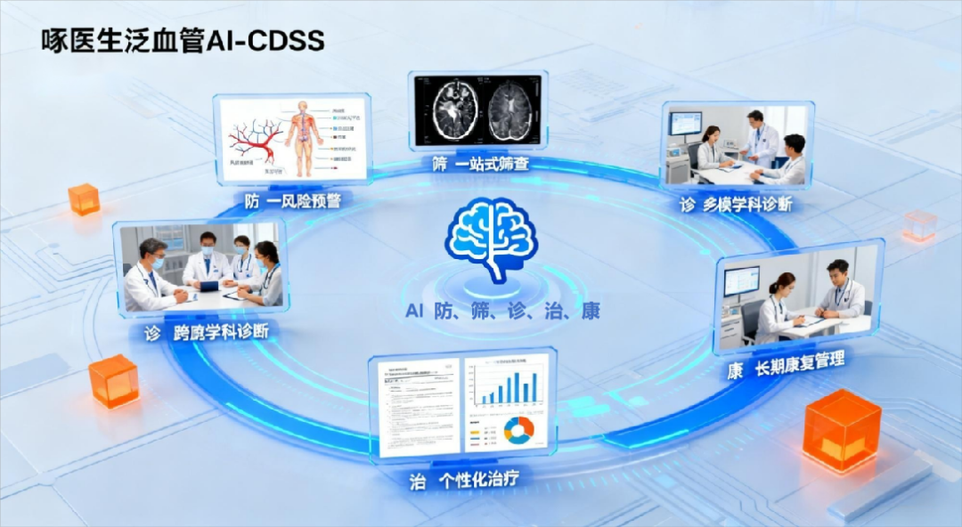 近年來(lái),人工智能技術(shù)在醫(yī)療領(lǐng)域的應(yīng)用日益深入,但專(zhuān)注于泛血管疾病全程管理的產(chǎn)品仍不多見(jiàn)。 這一空白正被填補(bǔ)??健培科技正式發(fā)布“泛血管疾病AI-CDSS全流程健康管理”產(chǎn)品,融合其領(lǐng)先的“啄醫(yī)生”醫(yī)療大模型技術(shù)與可穿戴設(shè)備,覆蓋從篩查、診斷到康復(fù)、隨訪(fǎng)的全流程。